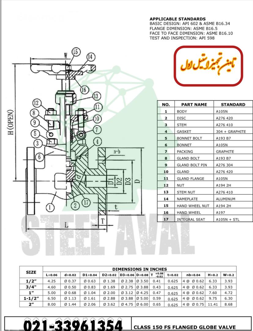 شیر سوزنی کلاس 150 فولاد A105 فورج