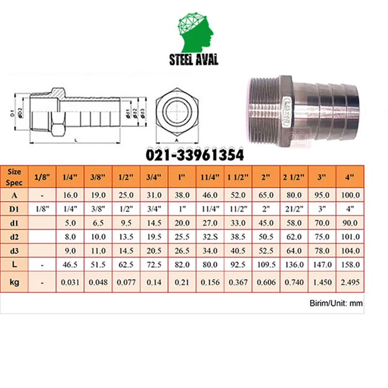 لیست آنلاین قیمت سرشیلنگی استیل برای دیدن قیمت سر شیلنگی به پایین صفحه مراجه کنید. سرشیلنگی استنلس استیل 304 و 316 کاربرد فراوانی دارد که یکطرف آن به شیلنگ مورد نظر متصل میشود سرشیلنگی استیل دارای تحمل 20 بار و در مدل های دیگر 200 بار قابل تحمل میباشد که در صنعت دارویی و غذایی و شیمیایی ودریایی و صنعتی مورد استفاده میشود که در انواع مختلف تولید و عرضه می شود که می توان به نوع آلیاژهای ۳۰۴ ۳۱۶ اشاره کرد که هر کدام کارایی خاص خود را دارد این مورد سرشیلنگی با استاندارد های جهانی تولید و عرضه می شود سرشیلنگی استنلس استیل در سایزهای مختلف تولید و واردات انجام میشود و به بازار عرضه می شود متوان از سایز ۱/۲ تا ۴ اینچ اشاره کرد این محصول یکطرف دارای دنده MPT می باشد که به شیر گازی استیل یا اتصالات دیگر وصل می گردد و یکسر دیگر ان هم مانند لوله می باشد که شیلنگ به آن وصل می شود و با بست شیلنگ ابندی متصل میشود و سیالات آب و بخار و اسید و چسب ازآن عبور می کند.