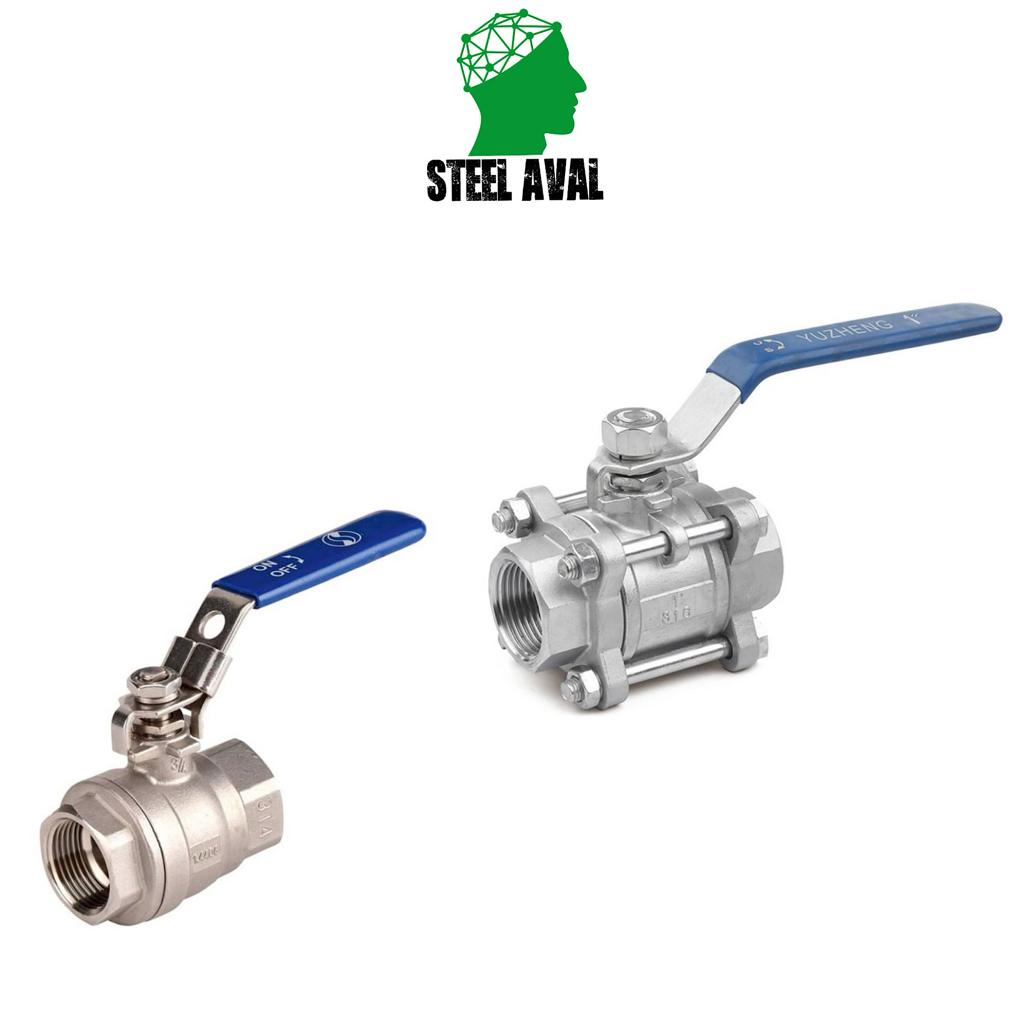انواع شیر گازی دو تیکه استیل و سه تیکه استیل ۳۰۴و۳۱۶